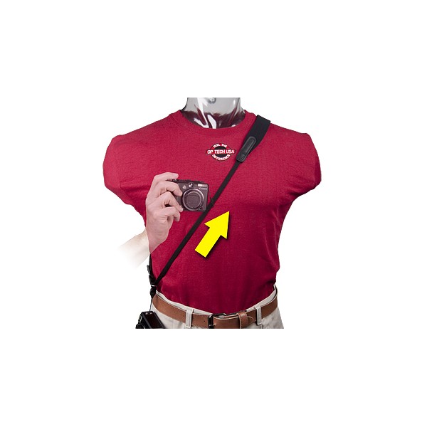 La Compact Sling™ d'Optech est idéale pour petits appareils-photo ou caméras et pourront coulisser le long de la sangle.