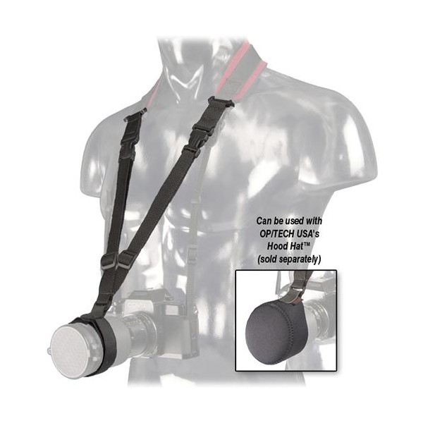 Conçu pour accueillir des objectifs jusqu’à 15,24 cm de diamètre, ce support offre un maintien supplémentaire rapide et facile. Les bretelles réglables avec pinces robustes se fixent solidement à la sangle, assurant un support fiable.