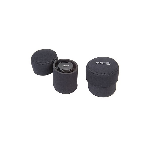 Etui en néoprène pour protéger vos objectifs, convertisseurs, adaptateurs ou autre, avec système de fermeture rabattable qui reste attachée au corps principal.