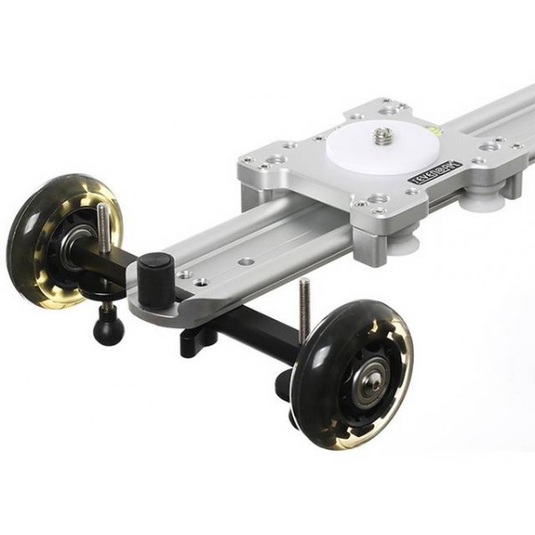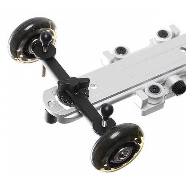 Ce produit est une plateforme mobile, une dolly pour la vidéo, grâce aux roues incluses, qui vous permet d'opérer des mouvements courbes et de longs parcours comme des panoramiques. Quant au rail de travelling, il vous offre des mouvements linéaires, d'une grande utilité pour les panoramiques comme pour les travellings.
