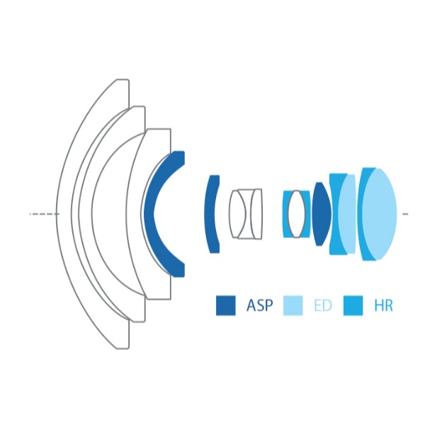4 lentilles à HR, 2 lentilles ED et 3 lentilles asphériques.