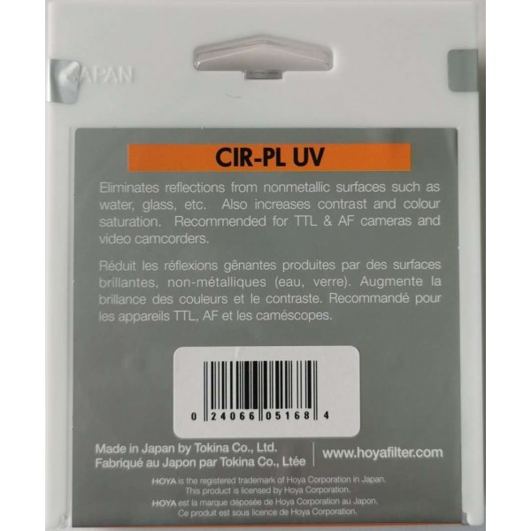 Hoya HRT CIR-PL UV est un type de filtre spécial qui utilise un film polarisant à haute vitesse (HRT). Il émet jusqu'à 25% de lumière en plus, tout en conservant les mêmes qualités de polarisation que les filtres polarisants classiques. Hoya HRT CIR-PL UV possède également des qualités d'absorption des rayons UV et ne nécessite aucun filtre UV supplémentaire.