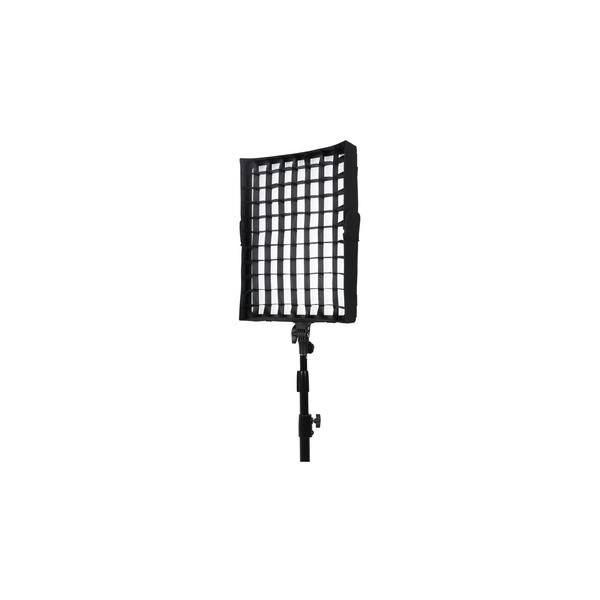 La grille en tissu pour les panneaux LED Soft Light Studio Compac 200 et 200B de Nanlite se fixe aux lumières via des sangles et réduit leur faisceau à 55 ° tout en éliminant la lumière des éclaboussures. Idéal pour les espaces restreints et un éclairage discret, la grille permet un éclairage sélectif et se replie pour le stockage et le transport.