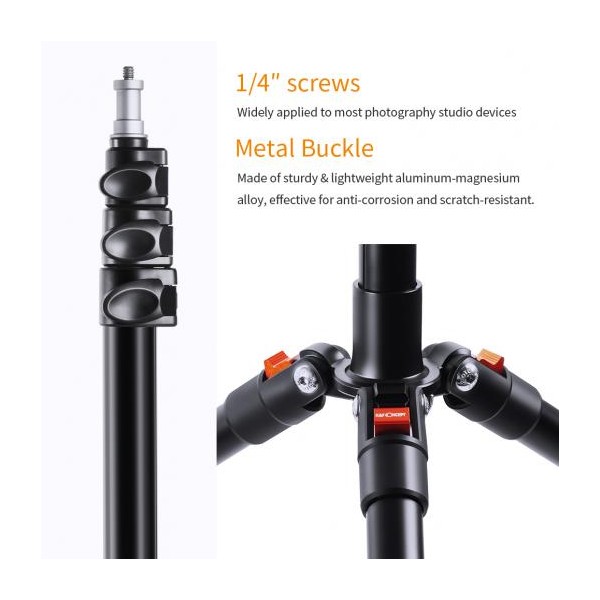 La conception pratique du verrou à bascule du mât télescopique le rend plus flexible et plus lisse que les autres verrous traditionnels, et améliore considérablement la commodité et la rapidité d'utilisation des pieds du support d'éclairage.