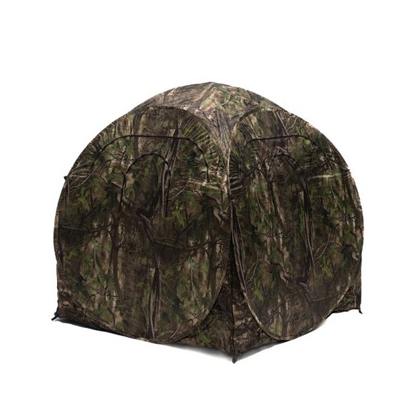 La toile de la tente est bien camouflée à l'extérieur et recouverte de noir à l'intérieur pour une obscurité maximale.