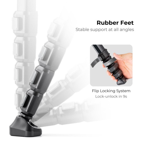 Pour garantir au trépied la même stabilité qu'un trépied sans colonne centrale, le trépied est conçu avec une base de verrouillage intégrée afin que les pieds du trépied puissent être verrouillés fermement et offrent une stabilité incroyable de niveau professionnel.