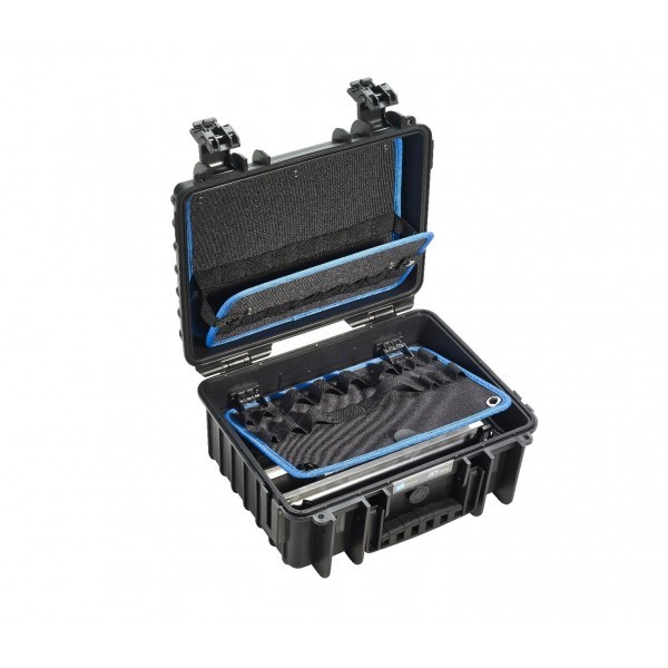 Les planches à outils sous le couvercle et pour couvrir le compartiment principal peuvent être facilement retirées en cas de besoin. Le système de séparation breveté en aluminium dans le compartiment principal est parfaitement adapté aux outils plus grands et plus volumineux.